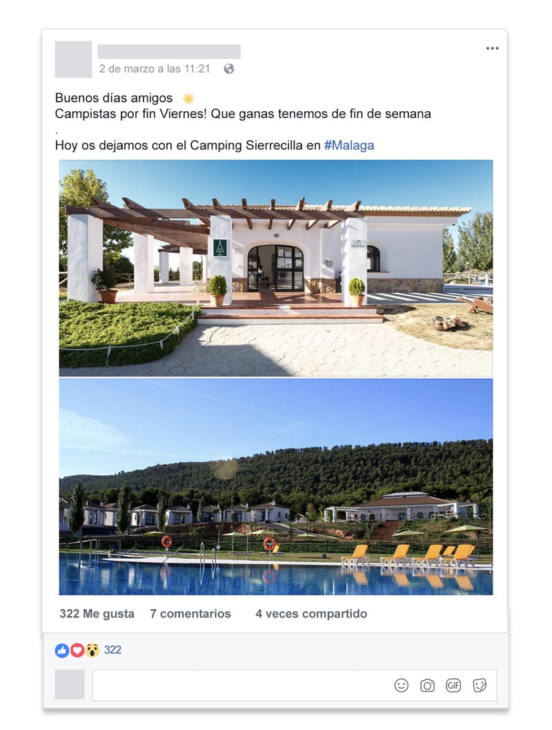 Creamos y publicamos contenido propio mediante texto, imágenes y vídeos para el camping.